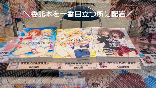 学マス本の隣にアクリルフィギュア、ガルクラ本の隣にアクスタを設置する都合上、委託本がセンターになりました(笑